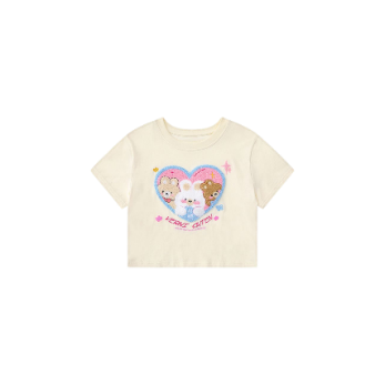Design: Short-sleeve tee with a pastel “Heart Friends” graphic featuring cute character illustrations.