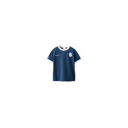 Color: Navy blue body with white contrast trims at the collar and sleeves.